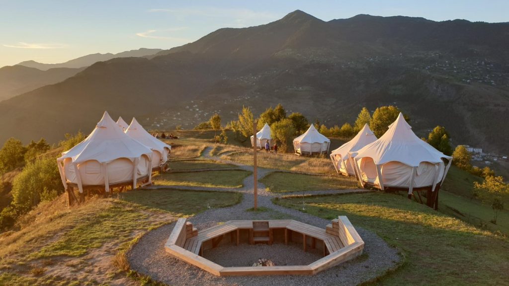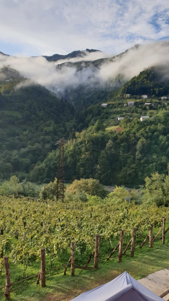 Grün mögen es auch meine Gastgeber in der Nähe von Vardzia (siehe unten) – alles, was sie ihren Gästen zum Abendessen und zum Frühstück anbieten, kommt aus dem eigenen Garten. Hätte ich im fleischlastigen Georgien gar nicht erwartet: Zum zweiten Mal nach Glamping Tago esse ich vegetarisch.