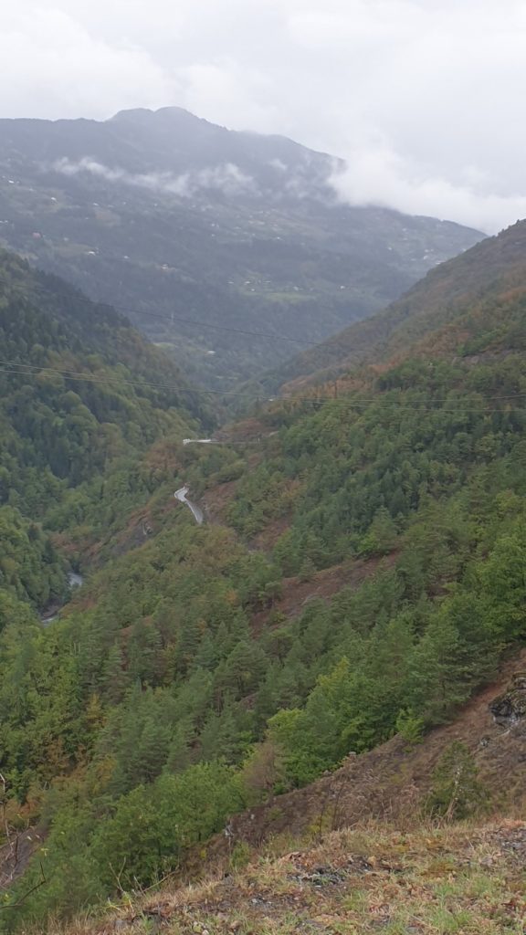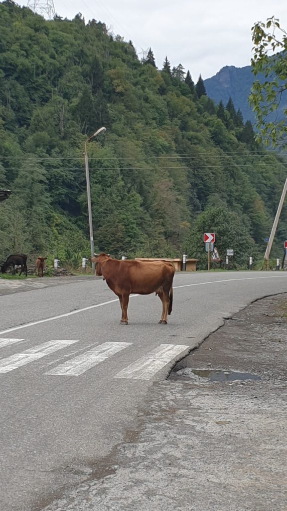 Für mich ging´s auf die Passstraße Richtung Khulo. Der Verkehr nahm mit jedem Höhenmeter ab und die Zahl der Kühe auf der Straße zu. Leider lag die Wettervorhersage genau richtig: Auf halber Strecke fing es an zu regnen. Kein Spaß, aber auch das muss man auf einer Radreise wohl mal mitgemacht haben.