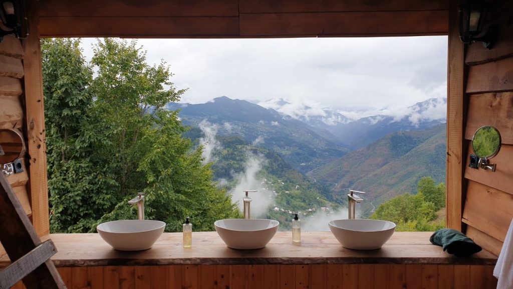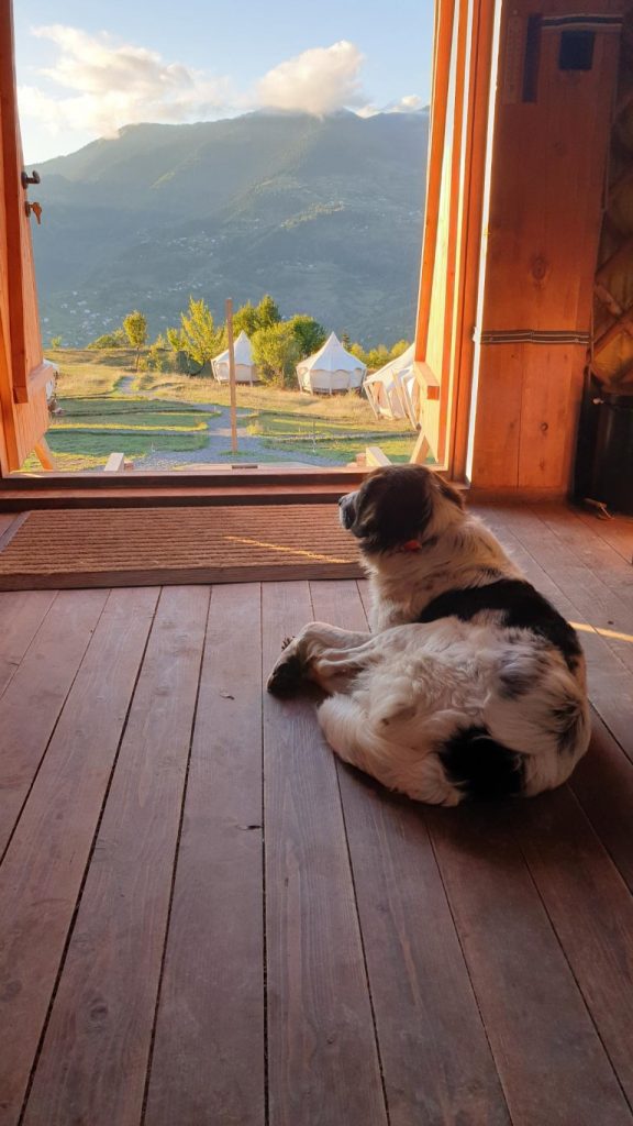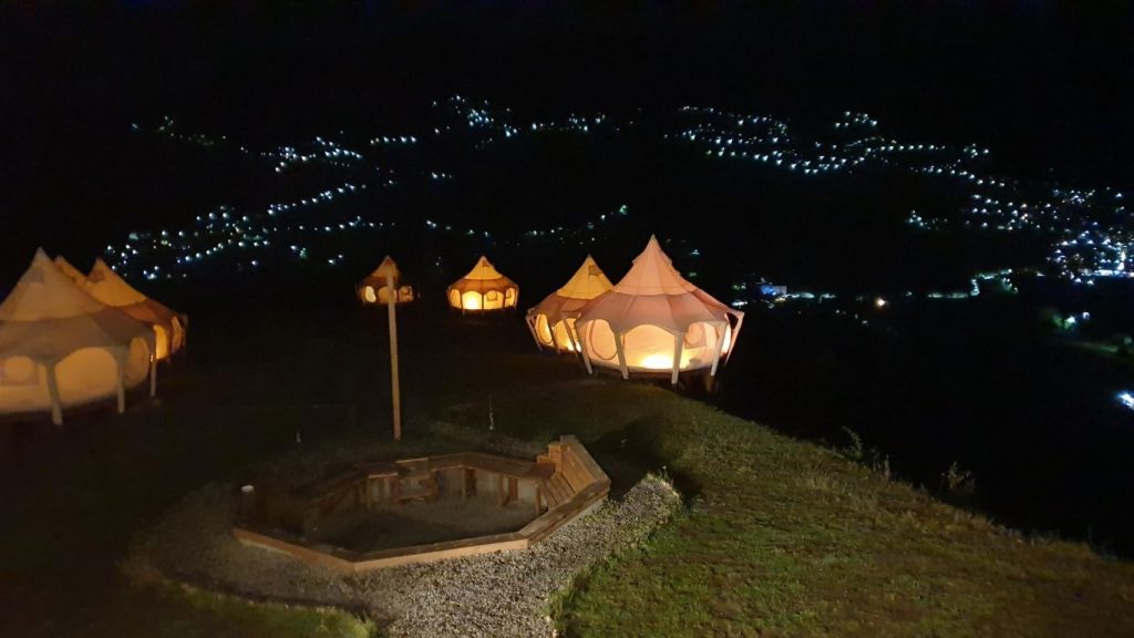Glamping Tago ist tatsächlich außergewöhnlich – nicht nur wegen des Blicks aus dem Freiluft-Badezimmer. Jonas aus Belgien hat sich beim Reisen in den Platz verliebt und kurzerhand zugeschlagen. Nachvollziehbar: Sein Glamping liegt auf einem kleinen Plateau mit einem wunderbaren 270-Grad-Blick. Sonnenauf- und -untergang sind magisch, nachts ziehen Sterne über einen hinweg, die man bei uns zuhause niemals sehen würde.