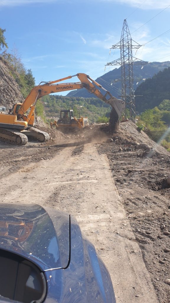 Die 1.600 Höhenmeter – es geht immer wieder rauf und runter – zum Goderdzi-Pass habe ich mir ehrlich gesagt mit Rad und meinem ganzen Gepäck nicht zugetraut. Ein Fahrer hat mich und mein Rad hinüber gebracht. Im Nachhinein eine sehr gute Entscheidung: Die Passstraße wird gerade von einer Dirt Road zu einer Teerstraße umgebaut – alle paar Hundert Meter sind Baustellen mit zum Teil für Räder unpassierbaren Stellen. Oben am Pass wurde ein Skizentrum gebaut, das dringend auf Anschluss an die Verkehrsinfrastruktur wartet. Auch hier bauen die unvermeidlichen Chinesen mit. Die neue Seidenstraße wird also auch durch den Südkaukausus führen.