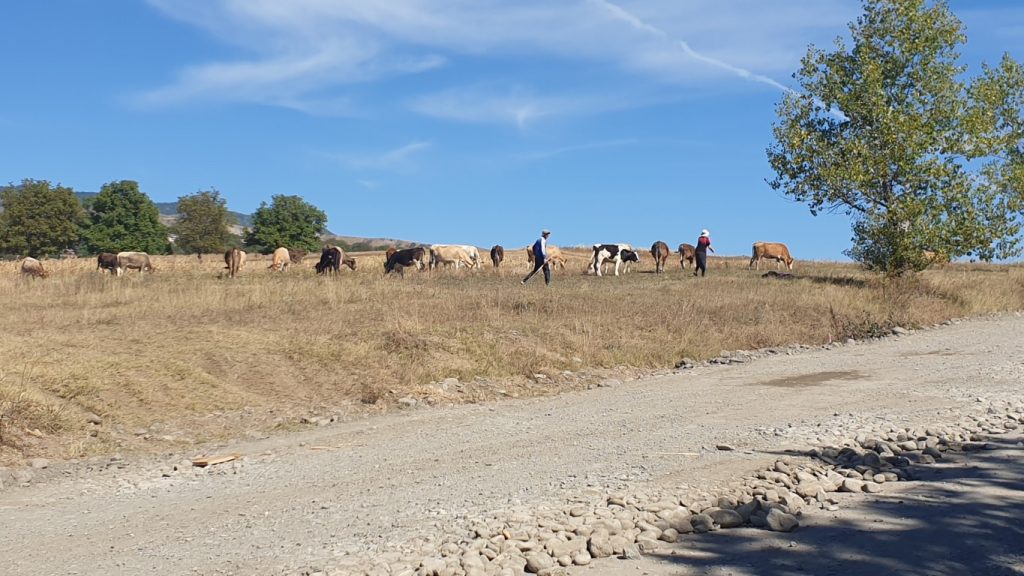 Auf der anderen Seite des Gebirgskamms erwartete mich eine völlig andere Vegetation. Alles ist im Herbst braun, Ackerbau gibt es hier kaum – Hirten ziehen mit ihren Kuh-, Ziegen- oder Schafsherden über die kargen Berge. Lediglich um die Flüsse herum ist es noch grün.