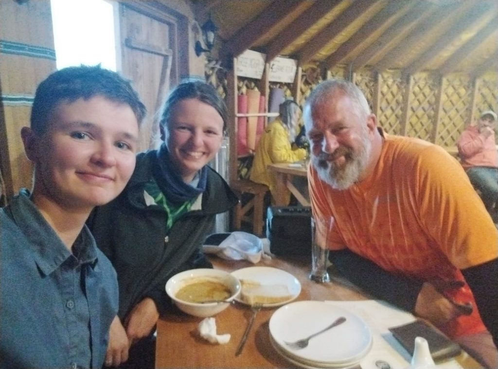 Es war bereits tief dunkel, als Lasse mitten im Nichts anhielt und mit dem Finger auf ein schwach erleuchtetes Haus deutete: „Dein Ziel – viele Grüße.“ Aus der Nacht tauchte eine Gestalt mit einer Stirnlampe auf: Kris aus Schottland, wie ich ein „Workawayer“ bei Irene.