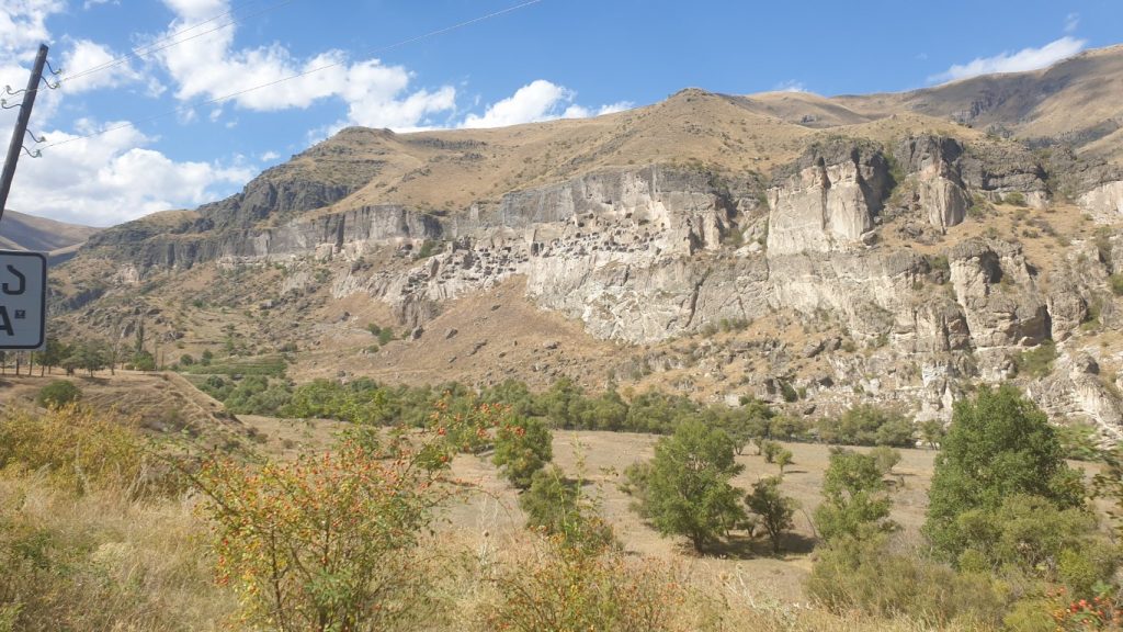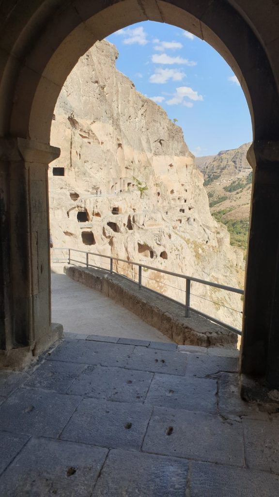 Die Höhlenstadt Vardzia ist UNESCO-Weltkulturerbe. Sie wurde im 12. Jahrhundert in den Fels gebaut. Im Notfall konnten hier bis zu 50.000 (!) Menschen leben. Ein Erdbeben ließ einen großen Teil der Stadt einstürzen. Trotzdem kann man dort noch herumklettern und sich einen Eindruck vom Leben damals verschaffen. Ich bin hingewandert – György (gefühlt heißen die Hälfte der Männer in Georgien so) hat mich ein paar Kilometer in seinem abenteuerlichen Truck mitgenommen.