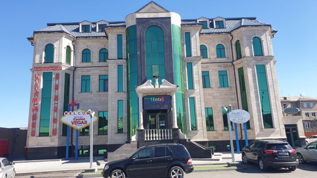 Mitten im Off Südwestgeorgiens – wohl durchdacht in der Nähe der türkischen und der armenischen Grenze: Hotel und Casino „Las Vegas“. Die Idee, die in den letzten Jahren Batumi so verändert hat, funktioniert auch hier: Glückspiel. Ich habe dort übernachtet, das Casino war abends proppenvoll.