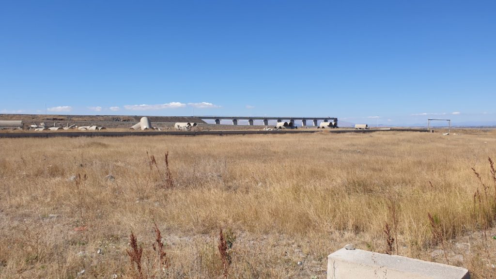 Warum diese unfertige Eisenbahnbrücke in meinem Blog vorkommt? Die Eisenbahn steht sinnbildlich für die politischen Probleme im Kaukasus. Aserbaidschan und Armenien stehen sich in der Auseinandersetzung um Bergkarabach spinnefeind gegenüber – abgesehen von den zwei großen Kriegen Anfang der 90er (Sieger: Armenien) und 2020 (Sieger: Aserbaidschan) kommt es immer wieder zu Schießereien an der Grenze. Russland, die Türkei und der Iran versuchen Einfluss zu gewinnen. Armenien hat nur offene Grenzen nach Georgien im Norden und Iran im Süden. Die Zugstrecke von Baku in Aserbaidschan nach Kars in der Osttürkei führt deshalb um Armenien herum durch Georgien.