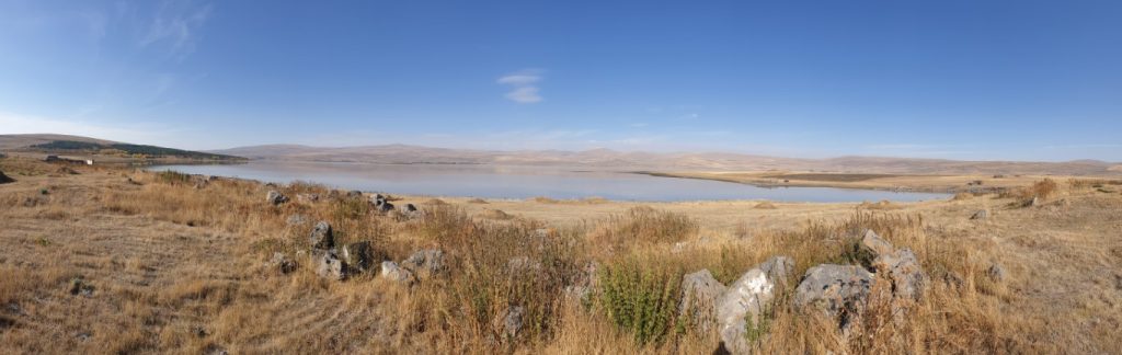 Die Landschaft bleibt herrlich. Ich bin kurz nach der Grenze zum Lake Arpi abgebogen, wo – auch mit deutscher Unterstützung – ein Nationalpark entstanden ist. Besonders attraktiv ist der See wohl im Frühjahr für Vogelliebhaber, aber auch im Herbst ist dieser entlegene Zipfel Erde – am Horizont beginnt die Türkei – sehenswert. Zum ersten Mal in meinem Leben wurde ich an einem Ein-Mann-Militärposten angehalten und kontrolliert.