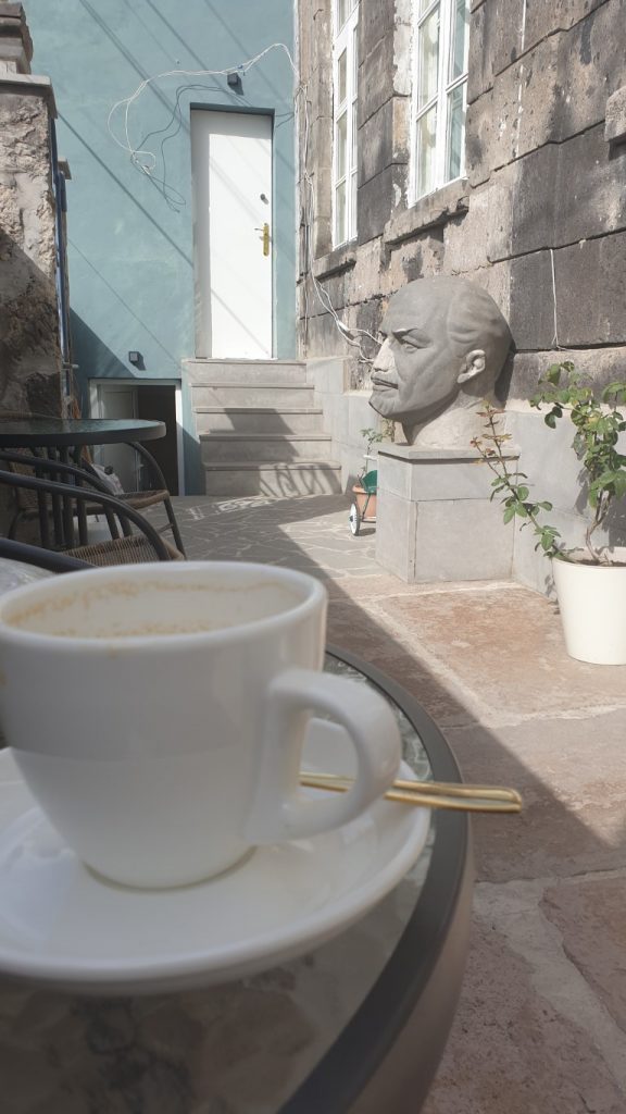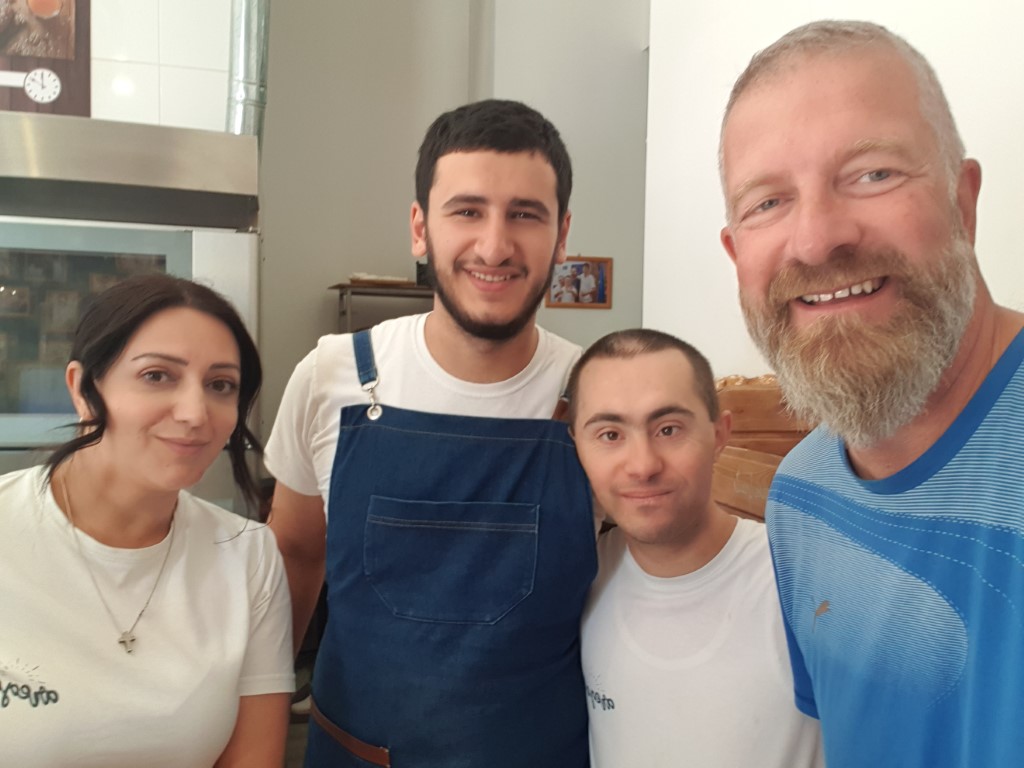 Gyumri hat viele Überraschungen zu bieten: Zum Beispiel Agerak, ein integratives Café, das mit Unterstützung der österreichischen Caritas entstanden ist. 16 Köpfe gehören zum Team, 8 davon haben ein Handicap. Lilit, Samuel, Hovhannes und all die anderen sind superfreundlich – und der Kaffee und die süßen Stückle superlecker. Das Café liegt genau gegenüber von meinem Hotel – natürlich war ich dort immer frühstücken.