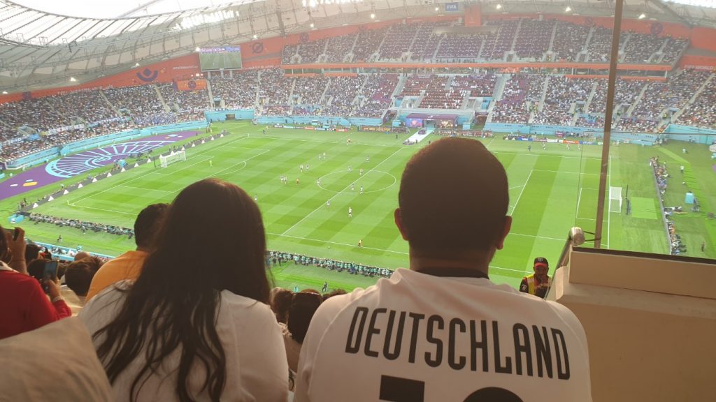 Dafür hätte die Mannschaft, die nicht mehr „die Mannschaft“ heißt aber als Mannschaft zusammenwachsen sollte, allerdings die volle Rückendeckung gebraucht. Zuhause und vor Ort. Ich hatte Lust dazu – und saß daher am 23. November zum ersten Mal in meinem Leben in vollem Ornat (deutsches Trikot am Körper und Schwarz-Rot-Gold auf dem Kopf) beim Spiel gegen Japan im Al-Thumama-Stadion. Aber ich war ziemlich allein.