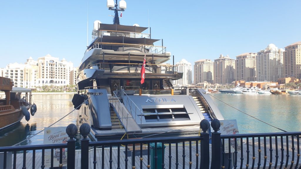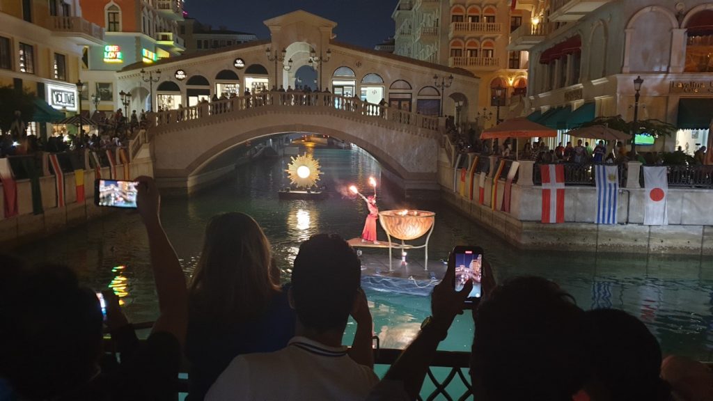 Ich komme gerade vom Finale schauen. Das Amphitheater in Porto Arabia war leider schon zwei Stunden vor Anpfiff proppenvoll, wir haben nebenan gerade noch einen Tisch bei einem Italiener bekommen.