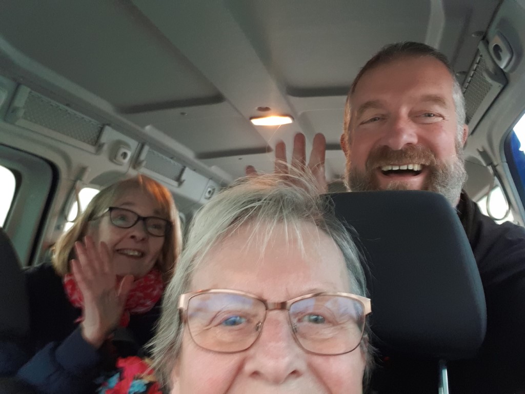 Wir hatten es trotz Reifenschaden lustig. Im Vordergrund die resolute Elisabeth Persson-Grip.