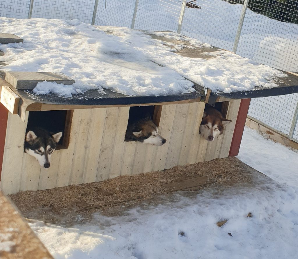 Malamutes sind dafür bekannt, dass es auch mal zu einer Auseinandersetzung kommen kann. Auch wenn gerade die Jungs so knuffig aussehen wie große Kuscheltiere. Meine Gastgeberin Irene ist sehr umsichtig: Ihre Hunde leben zwar miteinander, aber zu zweit bzw. zu dritt in vier Käfigen.