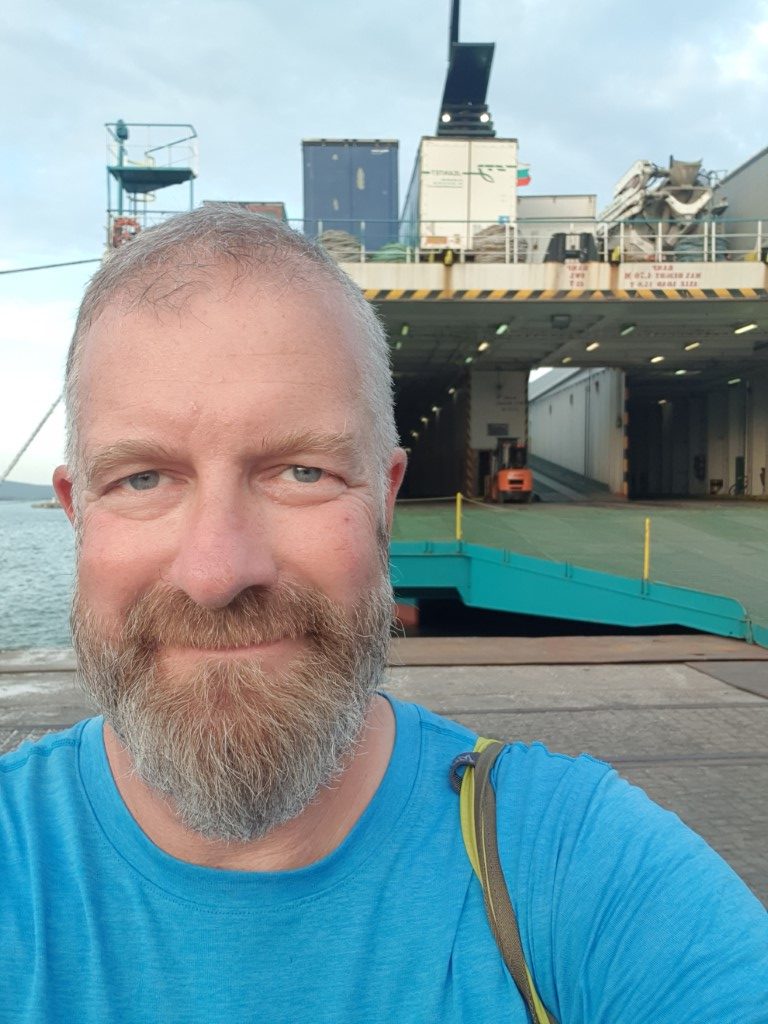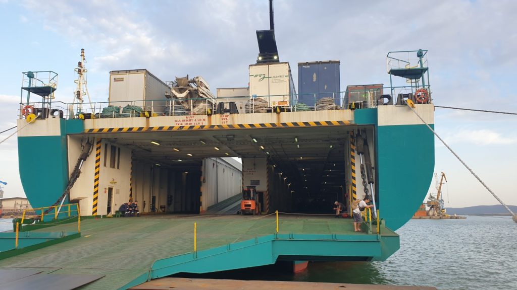 Am 16. September ging´s also im Hafen von Burgas los – oder besser: Sollte es eigentlich losgehen. „CHECK IN DEADLINES FOR PORT BATUMI AND BURGAS – 18.00“ steht in Großbuchstaben auf der Homepage der Fährgesellschaft. Was macht da ein Deutscher? Ist natürlich schon um 17.30 Uhr da. Und prompt noch ziemlich alleine. Nun ja: Das Beladen des Schiffes hatte immerhin schon begonnen. Bauch und Oberdeck waren aber noch gähnend leer, Passagiere kaum welche an Board. Für meine preußischen Tugenden hatte mein Mitbewohner Loris (siehe unten) später nur ein Kichern übrig.