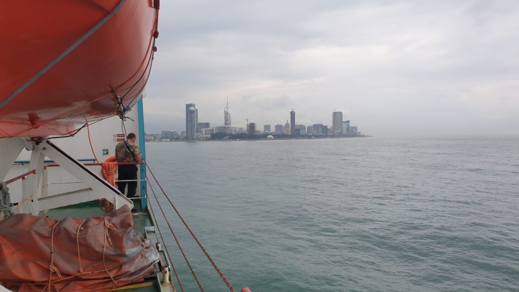 Mit an Bord war übrigens auch eine Familie aus Mariupol, der Stadt in der Ukraine, die im Krieg so gelitten hat. Eine Mutter mit ihren zwei keinen Töchtern, ein Mann mit seiner Frau/Freundin – gefühlt keiner der Erwachsenen über 25 Jahre alt. Sie ziehen von Ort zu Ort – jetzt wollen sie es bei Verwandten in Batumi versuchen.