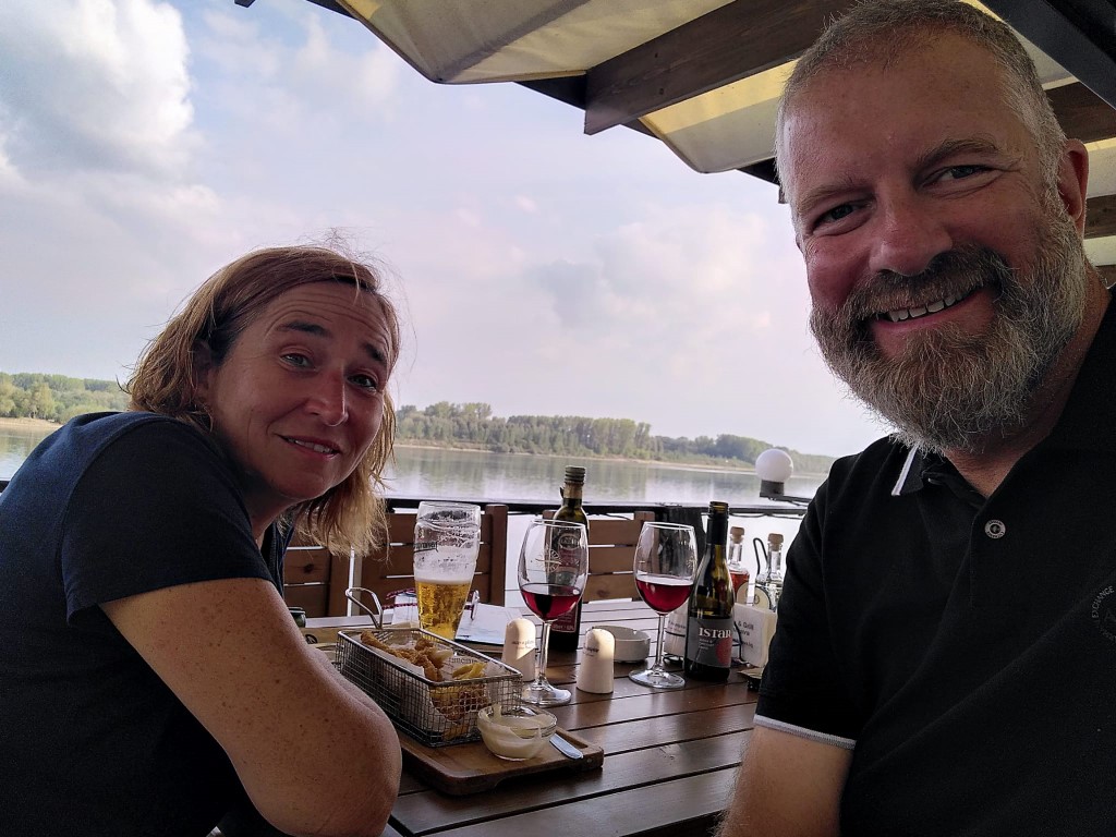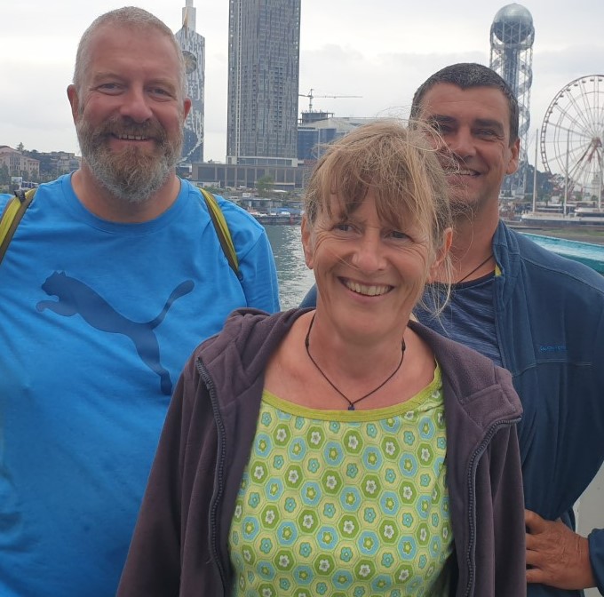 Ebenfalls an Bord: Andrea und Tino aus Meißen. Er ist Lehrer, sie Erzieherin. Die beiden sind in einem Sabbatical mit ihrem VW-Bus unterwegs und wollen nach mehreren Wochen auf dem Balkan Georgien und Armenien erkunden, bevor es über die Türkei wieder zurück nach Europa geht. Tino erwischte mich voll auf dem falschen Fuß: „Was ist die Partnerstadt von Ravensburg?“ Autsch. Coswig – da kommt er ursprünglich her. OK – werde ich nie wieder vergessen. Gesprächsthemen gab es jede Menge: das deutsche Bildungssystem (natürlich :-)), die gemeinsame europäische Identität, unsere Reiseerfahrungen. Als wir einmal zusammen an der Reling standen, waren wir uns einig: Es sind die Erfahrungen in anderen Ländern, die uns unser eigenes Land in einem anderen Licht erscheinen lassen. Einen schönen Gruß an die www.rumtreiber.eu.