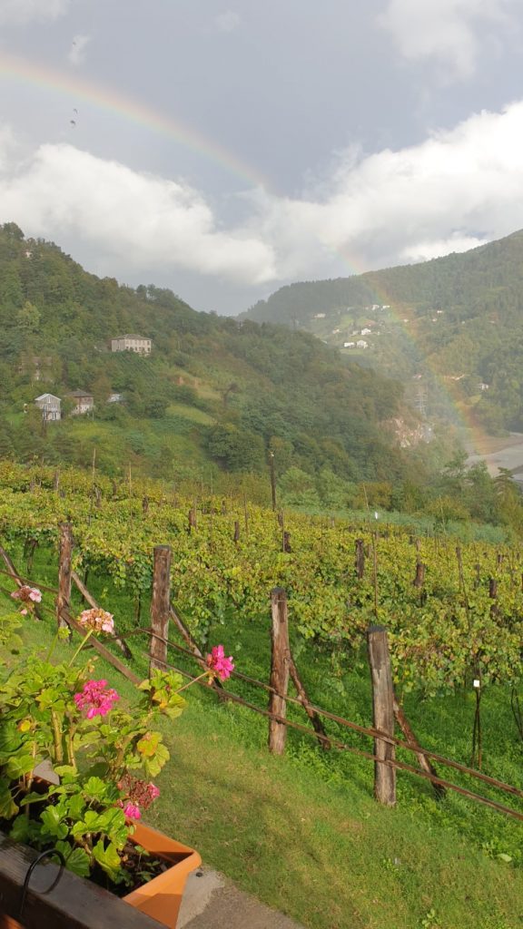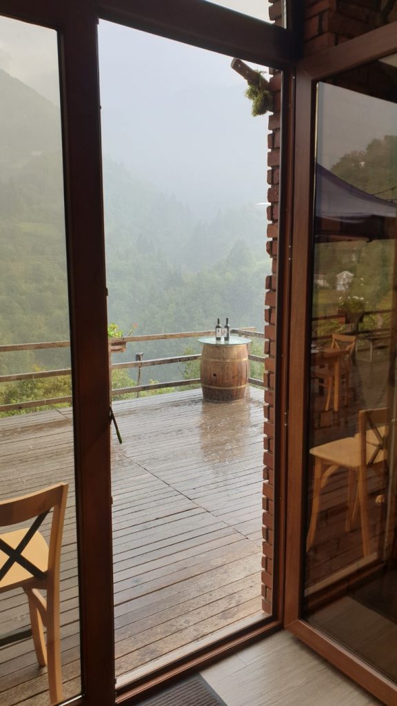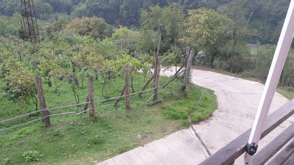 Bin trotzdem heil an meinem ersten Ziel angekommen, einem kleinen Weingut, das mit tollem Blick am Hang liegt. Genau pünktlich: Zehn Minuten nach meiner Ankunft hat es wieder aus vollen Rohren gegossen.